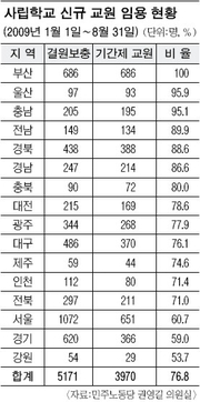 우리나라 중등 사학은 전체 중등학교 수의 30.2%, 학생 수의 31.9%를 차지할 만큼 비중이 크다. 미국 11%, 일본 중학 6.7% 고교 25.3%, 중국 11.4%와 비교해 봐도 그 차이는 명백하다. 교원 또한 마찬가지다. 2008년 현재 중학 교원 10만 8700명 가운데 1만 9710명으로 전체의 18.1%를 차지하고 있으며, 고교 교원의 경우는 5만 4598명으로 전체 12만 2906명 중 44.4%를 차지할 만큼 비중이 높다. 하지만 사학 교원에 대한 정책은 상당 부분 국공립학교 교원에 관련된 법률을 준용하도록 되어있는 등 사학의 특성에 부합하는 정책들이 추진되어오지 못한 것이 사실이다. 15일 대한사립중고교장회I(회장 최수철)는 프레스센터에서 ‘자율화 시대의 사학 교원정책의 진단과 과제’를 주제로 사학 교원의 현실과 과제에 대해 짚어보는 자리를 마련했다. 인사위, 학운위의 임용 심의는 자주성 훼손 과원교원, 행정 전담교사 등 전환 신중해야 ▶ 사학교원 운용의 현실 사립학교 교원 임용에서 가장 큰 문제점은 임용과정의 투명성 결여라는 지적이 제기됐다. 황영남 서울 세종고 교장은 주제발표를 통해 “현재 사립학교는 교원 임용에 대해 사학법인이 완전한 자율성을 갖고 있으나 채용 투명성에 대해서는 의문을 받고 있는 것이 사실”이라고 말했다. 황 교장은 “교사 초빙공고를 대중매체를 통해 일정 기간하고, 공개경쟁을 통한 채용 과정을 거친다고 할지라도 대체로 해당 학교법인의 관계자나 교직원, 관련인사 등의 영향력에 의해 선발하고 있다고 보기 때문”이라고 그 이유를 짚었다. 황 교장은 그러나 “사립 교원 임용의 객관성, 공정성, 투명성을 높이겠다고 필요 인원을 시도 교육청에서 대신 선발하거나 교원인사위 또는 학운위의 심의 또는 참여를 독려하는 것은 사학의 자주성과 독립성을 훼손한다는 측면에서 문제”라며 “사학의 특수성과 독자성을 훼손하지 않고 자율적 학교 운영을 보장할 수 있는 임용 제도를 확립해야 한다”고 주장했다. 특히 황 교장은 “2009 개정교육과정이 성공하려면 선택 교육과정 운영과 현 교원의 불일치로 인해 발생하는 문제들을 해결하는 것이 급선무”라며 “과원 교사에 대한 학교법인 차원의 문제해결은 현실적으로 불가능하다”고 말했다. 그는 “국공립과 달리 전직·전보가 거의 불가능한 사립 교원의 신분보장을 위한 제도적 뒷받침이 필요하다”며 “부득이하게 발생하는 과원 교원을 새로운 교육서비스를 위한 전문가(행정 전담 교원, 컨설팅 전담 교원, 생활·인성지도 전담 교원 등)로 활용하는 방안을 적극 검토할 필요가 있다”고 제안했다. 이에 대해 토론자로 참여한 신정기 교총 정책교섭실장은 “행정 전담교사 등으로 활용하는 방안은 교원 개개인의 의사를 최대한 존중한다는 전제 하에서 신중히 검토되어야 할 것”이라며 “과원교원이 복수·부전공으로 다른 교과목의 교원자격증을 소지하고 있거나 취득할 경우 학교 내에서 가르칠 수 있는 기회를 주는 것이 우선돼야 한다”고 강조했다. 기간제 교원 비율 공립보다 3%이상 높아 신분보장위해 사립교원 관련 법률 제정을 ▶ 사학교원 정책의 진단 및 과제 “사학의 자율적 교원 운용권을 확대하고, 사립 교원의 복무규정을 완화할 필요가 있다.” 김이경 중앙대 교수는 “시대적 변화와 교육 환경 변화가 요구하는 교육을 제공할 수 있는 역량을 갖춘 우수 교원을 확보하기 위해서는 사학 교원의 자격 및 임용 관련 규제를 완화하고 기간제, 반일제, 격일제 등 교원임용 방식 다양화를 허용할 필요가 있다”고 주장했다. 김 교수는 “외국의 경우 교원 양성, 교원 자격증 요구, 처우 및 임용 조건 등에 있어서 사학기관에는 광범위한 자율성이 주어져 있다”며 “우리 사학도 다양한 교육적 수요를 충족시키는 기관으로 거듭날 수 있도록 하려면 각 기관의 특성, 여건, 지향점을 반영해 자율적으로 선택할 수 있는 여지를 주어야 한다”고 말했다. 김 교수는 “현재 일반계 고교는 15.5명 대 17명, 전문계는 12.2명대 14.5명으로 두 명 정도 교원확보율이 적은 반면 기간제 비율은 공립보다 3%이상 높다”며 “근무부담을 가중시키는 사학 교원의 여건을 우선 개선해야한다”고 요구했다. 또 김 교수는 “사학의 건학이념을 반영한 교육과정 운영 자율권을 확대하는 동시에 학생선택권도 주어져야 한다”며 “제 아무리 차별화된 프로그램을 운영한들 학생과 학부모의 학교선택권이 없다면, 로 체감할 수 있는 만족도는 크게 떨어질 것”이라고 덧붙였다. 김 교수는 “오랫동안 적용되어 왔던틀을 하루아침에 바꾸기는 쉽지 않을 것”이라며 “사학들의 연합과 공조를 통해 자율화를 위한 단기, 중장기 마스터 플랜을 수립해 나가는 것이 바람직 할 것”이라고 제언했다. 김 교수의 사립 교원 복무규정 완화 제언에 대해 신정기 실장은 “사립 중고교 교원의 임용에 관해서는 상세한 규정이 없는 입법 불비의 상태”라며 “설립자 혹은 경영자의 학교교원에 대한 부당하고 과도한 인사권 남용이나 권한행사로부터 사립 교원의 신분을 보호할 수 있는 별도의 사립학교 교원에 관한 법률(가칭) 제정이 필요하다”고 주장했다.