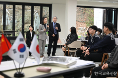 최근 다문화학생 비율이 증가하면서 학교의 고민도 늘고 있다. 이에 강주호(사진 왼쪽) 교총 회장, 석승하 서울교총 수석부회장 등 교총 임직원이 다문화 교육 우수학교인 서울이태원초(교장 장진혜)를 19일 방문해 현장 의견을 들었다. 이 자리에서 장 교장은 다문화학생 비율이 높은 학교는 일반학교에 비해 어려운 점이 다수 존재한다고 설명하고, 제도적인 뒷받침이 필요하다는 것을 강조했다. 우리 사회가 다문화 사회로 빠르게 진입하고 있지만, 정책적 지원 부족으로 학교가 어려움에 처해 있다는 것이다.특히 학부모와의 소통이 어렵다는 점을 강조했다. 학부모 연수 참여나 역할에 대한 학교의 권한이 사실상 없다 보니 교원들이 어려움이 가중되는 현실이다. 이에 강주호 교총 회장은 “다문화교육은 기초학력 보장과 저출생·인구소멸 사안과 더불어 교육의 가장 중요한 문제 중 하나지만, 국민적 관심사가 높지 않은 것이 사실”이라며 “학교 현실을 널리 알리고 공감대를 형성하는 게 중요하다”고 강조했다. 이어 교총이 진행 중인 다문화학생 밀집학교에 대한 연구를 소개하고, 공론의 장을 만들어 다문화 교육현장이 겪는 애환을 파악하고 개선방안을 수립·추진하겠다는 계획을 밝혔다.