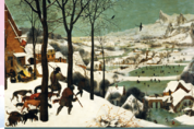 피터르 브뤼헐(Pieter Bruegel the Elder, 1525/30경~1569)의 1565년 작품 눈 속의 사냥꾼(Hunters in the Snow)은 시간을 마주하는 인간의 모습을 담아낸 작품이다. 거대한 자연을 배경으로 펼쳐지는 공동체의 풍경 속에서 삶의 일면이 잔잔히 느껴진다. 피터르 브뤼헐은 16세기 네덜란드 장르화1의 선구자로, 풍경화적 요소가 있는 화면에 농민의 삶을 담았다. 그는 당시의 생활상을 알 수 있는 중요한 자료가 되는 작품을 남겼는데, 농업·사냥·음식·축제·놀이 등 마을의 절기 의식을 생생하게 묘사하였다. 자연과 함께 어우러지는 공동체의 삶과 일상을 섬세하게 담아내었다. 그의 회화는 기존에 유행하던 종교적 서사에서 벗어나 인간에게 관심을 돌려 삶과 자연을 그려냈다는 점에서, 르네상스 후기에서 바로크 초기 사이의 전환기 회화의 중요한 획을 그은 것으로 평가된다. 브뤼헐이 활동하던 시기는 종교개혁의 격변기를 지나며 유럽 미술의 중심 주제가 신화와 종교에서 인간과 자연, 그리고 일상으로 서서히 확장되던 때였다. 북유럽 미술은 고대 그리스와 로마의 학문과 문화의 재발견으로 꽃을 피운 이탈리아 르네상스와 달리, 종교개혁의 정신에 영