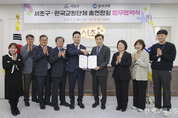 한국교총은 13일 서울 서초구청(구청장 전성수·사진 오른쪽 네 번째)과 AI 산업 육성 지원 및 지역사회 공헌을 위한 업무협약(MOU)를 체결했다. 양 기관은 협약을 통해 서초구가 추진하는 ‘서초 AICT’ 사업과 연계해 한국교총의 인프라를 공유하고, 지역 내 소외계층을 위한 사회공헌 복지 사업을 공동 추진한다는 계획이다. 구체적인 협약 내용은 ▲AI 산업 육성 협력 ▲구민 대상 AI 교육·연수 프로그램 공동 연구·개발 ▲서초구청 추진 사업·행사 등에 대한 교총회관 시설 활용 협력 ▲저소득층 장학·복지 사업 공동 추진 등이다. 협약에 따라 서초구청은 교총회관 내 입주한 AI 기업들이 서초 AICT 사업의 핵심 혜택인 AI특수 버스 이용, 고성능 컴퓨팅 인프라 지원, 규제 특례(특허법 및 출입국관리법 등) 혜택 등을 원활히 받을 수 있도록 협력한다. 또 교총은 서초구청에 대해 회관 내 주요 시설에 대해 임대, 대관료, 주차료 할인 등 실질적인 편의를 제공할 예정이다. 특히 사회공헌을 위한 복지 사업의 일환으로 한국교총장학회와 연계한 장학사업을 서초구청과 공동으로 추진하며, 저소득층 아동·청소년을 위한 ‘희망 안경 지원 사업’을 통해 소외계층의 삶의 질