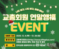 한국교총이 연말을 맞이해 회원을 대상으로 ‘연말 행福 복지이벤트’를 실시한다. 이벤트 응모는 이달 28일까지 교총복지플러스 홈페이지(kftaplus.com)를 통해 원하는 경품을 체크하고, 댓글을 쓰면 된다. 댓글 내용은 교총 회원 대상 복지 아이디어나 동료 교사·학생들을 위한 2026년 병오년 새해 덕담을 남기면 된다. 1인당 1회 응모가 가능하다. 경품은 애플 에어팟 4(2명), 4세대 New 와이드 에어커튼 무연그릴(2명), 스팀 에어프라이어 오븐(3명), 엘도라도리조트 숙박권(3명), 서울랜드 자유이용권(50명), 키자니아 무료입장권(5명) 등 100여 개가 준비됐다. 당첨자 발표는 30일 예정이다. 자세한 내용은 교총복지플러스 홈페이지에서 확인할 수 있다. 김성동 교총 회원복지국장은 “교총 제휴 업체를 통해 회원을 위한 경품을 다양하게 준비했다”며 “이번 이벤트 외에도 다양한 혜택을 줄 수 있도록 노력할 것”이라고 밝혔다.…