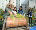 1일 오전 서울충무초(교장 홍경희) 학생들이 충남 홍성 친환경농업협회의 지원을 받아 벼베기, 떡메치기, 새끼꼬기 등 전통적인 가을추수 방법을 체험하며 즐거워하고 있다