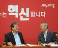안양옥 한국교총 회장(오른쪽)이 4일 오전 서울 여의도 국회본관에서 김무성 새누리당 대표를 만나 교육감 직선제 위헌소송 추진을 설명하고 일반고 살리기 및 교육현안들에 대해 논의 했다.