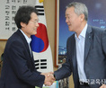 조희연 서울시교육감이 첫 기관방문으로 한국교총을 찾았다. 조 교육감은 2일 오후 서울 서초구 한국교총을 방문해 안양옥 교총회장과 환담을 나누고 앞으로 교육정책 추진에 있어 교총의 협조를 요청했다.