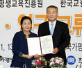 한국교총과 국가평생교육진흥원은 13일 진흥원 스마트회의실에서 업무협약식을 갖고 학생·교사·학부모의 평생교육·학습 기능 강화 및 문화 확산을 위해 협력하기로 했다. 최운실 원장은 인사말을 통해 “국내 최대 교원단체인 한국교총과 전국학부모지원센터를 운영하고 학교기관들과의 유기적 관계를 맺고 있는 국가평생교육진흥원이 뜻을 함께 해 나가면 미래교육 환경의 허브 역할을 할 수 있을 것으로 기대한다“고 말했다. 국가평생교육진흥원은 평생교육법에 의거 2008년 2월에 설립된 국가 단위 평생교육 추진 전담기구 이다.