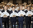 24일 프레스센터 20층에서 인성교육범국민실천연합 출범식 참석자들이 '인성실천'이라고 쓰여진 부채를 펴보이는 퍼포먼스를 하고 있다. 좌측부터 천세영 충남대 교육대학원장, 조벽 동국대 석좌교수, 이주호 교과부 장관, 안양옥 교총회장, 탤런트 최불암 씨. 경기 부안초 합창단 학생들이 오프닝 공연을 하고 있다. 가족이 함께 '서약의 벽'에 핸드 프린팅을 하고 있다. 이날 행사에서는 레이저 쇼 등 다양한 공연과 이벤트가 함께 펼쳐졌다. 학교에서의 인성교육에 관해 토크를 하고 있는 출연자들. 좌측부터 박지윤 아나운서, 정진남 오산원일초 교사, 정연주 오산고 학생, 안양옥 교총회장.