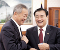 안양옥 교총회장은 17일 오후 국회 본관 국회의장실에서 강창희 국회의장(오른쪽)을 만나 교육현안을 논의했다. 이 자리에서 강 의장은 “충남대 총장을 지낸 아버지를 비롯해 교육자 집안에서 자라 교육문제에 관심이 많았다. 교육문제에 각별한 신경을 쓰겠다”고 말했다. 강 의장은 또 교총을 직접 방문하겠다는 뜻도 밝혔다.