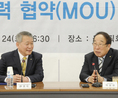24일 송파구 방이동에 위치한 대한체육회 13층 회의실에서 한국교총(회장 안양옥)과 대한체육회(회장 박용성) MOU 체결식이 진행됐다. 인사말을 전하고 있는 박용성 대한체육회 회장(우측). 양측 대표들이 협약서에 사인을 하고 있다.