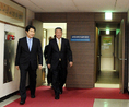 23일 한국교원단체총연합회(회장 안양옥)와 교육과학기술부(이주호 장관)는 세종로 정부중앙청사 16층 교과부 대회의실에서양측 간의 교섭·협의 본교섭이 개최됐다. 교섭 개회식 참석을 위해 이주호 장관(좌측)과 안양옥 회장(우측)이 모습을 보이고 있다. 본교섭 안건을 제안하기에 앞서 양측의 대표가 모두 발언을 진행하고 있다. 교육과학기술부 이주호 장관과 한국교원단체총연합회 안양옥 회장이 원만한 교섭 진행을 기대하며 악수를 나누고 있다.