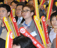 지난달 30일 한국교총에서 열린 '2012년 제1회 전국교육자 대표 회의' 참석자들이 '교원 정치기본권 쟁취! 교육자치 사수!'를 외치며 결의를 다지고 있다.