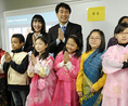 12일 이태원초등학교를 방문한 이주호 교과부 장관이 다문화 학생들과 함께 인도식 인사를하고 있다.