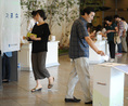 24일 오전, 서울 서초구 한국교총회관에 마련된 투표소에서 시민들이 무상급식 지원범위에 관한 주민투표를 하고 있다. 오후 5시 현재 투표율은 20.8%이며, 투표는 오후 8시까지 진행된다.
