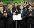 한국교총(회장 안양옥)과 전쟁기념사업회(회장 박장규)는 8일 전쟁기념관에서 호국안보의식 고취 및 나라사랑 정신고양을 위한 업무협약을 체결했다. 안양옥 교총 회장이 박장규 전쟁기념사업회 회장으로부터 기념품을 받고 있다.