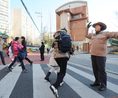 새 학기가 시작된 가운데 3일 서울 성동구 응봉초등학교앞 정문에서 등굣길 교통지도를 하며 학생들의 안전을 돕고 있는 학교보안관들의 모습.서울시내 547개 국·공립 초등학교 학생들의 안전을 담담할 '학교보안관' 1094명은 2일 본격적인 활동을 시작했다. 학교보안관들은 학교 폭력과 유괴, 교내 출입을 통제하며학생들의 안전을 보호하게 된다.