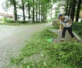 2일 태풍 '곤파스'의 상륙으로 수도권 지역 초.중학교의 등교시간이 2시간 늦춰졌다. 이날 오전 9시경 서울시내 한 중학교에서는 태풍으로 인해 나뭇가지들이 부려져 학교관계자가 치우고 있다.
