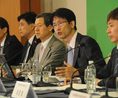 기획재정부와 한국개발연구원 공동 주최로 31일 서울교육문화회관 금강홀에서 교육분야 주요 재정이슈에 대한 공개토론회가 열렸다. 안선회 고려대 연구교수(오른쪽 두번째)가 '중등 교육예산 효율화 방안'이란 주제로 교육재정 구조 개혁과 재원 확보 및 재정 효율화 방안 마련의 필요성을 강조하고 있다.