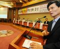 임해규 의원(한나라당)과 한국교총 공동 주최로 23일 국회 의원회관 소회의실에서 수석교사 법제화 및 역량강화 포럼이 열렸다. 이원춘 교육개발원 연구위원이 '수석교사의 전문성 및 역량 강화방안'이란 주제를 발표하고 있다. 임해규 한나라당 교육과학기술위원은 인사말에서 수석교사법제화가 이루어 질 수 있도록 적극적으로 노력 하겠다고 밝히고 있다.