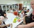 서울시강남교육청은 2일부터 20일까지 관내 13개 영어캠프중심학교에서 초등 3~5학년 1071명을 대상으로 영어체험캠프를 실시하고 있다. 3일 서울대치초에서 원어민교사가 카드 게임을 통해 수업을 진행하고있다. 학생들이 '크레페'요리를하며 원어민 교사와 함께 영어수업을 하고 있다. 강남교육청은오전 9시부터 오후 4시까지 3주 동안 체험 중심의 영어캠프를 통해 사교육비 절감에도 크게 기여하고 있다. 강남교육청은 레벨테스트를 거쳐 수준별 반 편성을 하여 원어민교사와 한국인교사와의 협력 수업으로 내실 있는 캠프를 운영하고 있다. 원어민교사와 함께 춤을 추며 즐겁게 수업을하고 있는 학생들.