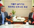 26일 안양옥 한국교총 회장은 김상곤 경기교육감을 방문한 자리에서 교원사기 진작 정책 추진의 필요성 및 학생인권조례 제정 추진 등 교육현안에 대한 교총의 입장을 전달하고 협조를 촉구했다. 안양옥 한국교총 회장과 김상곤 경기교육감이 간담회를 가진 후 양측 대표자들이 모여 기념촬영을 하고 있다.