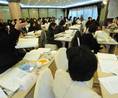 2009-02-27 18:0027일 서울 잠실 실내체육관에서 온라인교육업체 메가스터디㈜ 주최로 열린 '2010학년도 대입전략 설명회'에 1만2천 명이 넘는 학부모들이 몰려 성황을 이뤘다. 주말도 아닌 평일 사설학원이 개최한 입시설명회에 1만 명이 넘는 인파가 몰린 것은 매우 이례적인 일로, 내년도 입시에 대한 학부모들의 불안감이 반영된 것으로 보인다고 학원측은 설명했다. 이날 오후 1시50분께. 행사가 시작되기 전부터 체육관 내부는 물론 주변까지도 입시설명회에 참석하려는 학부모와 학생들로 북새통을 이뤘다. 체육관 좌석과 바닥은 미리 도착한 학부모들과 학생들로 이미 '만석'이 된 상태였으며, 체육관 밖에서는 비교적 '늦게' 도착한 학부모들이 인근 야구장까지 약 500m에 걸쳐 4∼5줄로 길게 줄을 서 있었다. 입시설명회는 대규모 인원이 운집한 가운데 진행됐지만 시종 진지한 분위기였다. 부모들은 수첩과 볼펜을 꺼내 강사들이 전해주는 수험전략을 꼼꼼하게 필기하며 수험생 못지않은 '학습열기'를 보였고, 학생들도 초롱초롱한 눈빛에 귀를 쫑긋 세우는 모습이었다. 학원측은 내년도 입시전략에 대해 "수시와 정시의 차이점을 명확히 정리하고 있을 필요가 있다"며 "수시는 학생부 등에서 비교우위가 있는 학