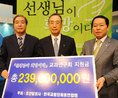 한국교총(회장 이원희 右)과 조선일보(발행인 김문순 中) 공동으로 '선생님이 희망이다' 교과연구회 지원금 전달식이 24일 조선일보 강당에서 개최되었다. 서울중등영어교과교육연구회 회장 정진영 (左) 이원희 교총회장이 인사말을 하고 있다. 이원희 교총회장이 한국학교보건교육연구회 이석희 회장에게 교과연구회 지원금 증서를 수여하고 있다.