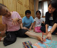 서울시교육청은 16일,17일,26일,27일 4회에 걸쳐 2008학년도 학생봉사활동지도자 체험연수를 홀트일산복지타운에서 실시하고 있다.17일 체험연수에 참여한 교사가 장애인의 그림그리기를 돕고 있는 모습. 이 번 연수는 고등학교 봉사활동 담당교사 300여명을 4기로 나누어 장애원생 식사 및 목욕 보조, 함께 대화하기, 놀아주기, 일손돕기 등 다양한 봉사활동을 실시하고 있다. 특별한 만남, 소중한 나눔의 기회를 통해 봉사활동 지도자로서의 자질을 함양하고 학생봉사활동을 내실화 하는데교사들이 앞장서고 있다.