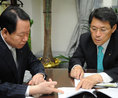 이원희 교총회장이 7일 오전 8시 30분경 이군현 한나라당 의원을 방문해 정책간담회를 가졌다. 이날 지역교육청을 지역교육지원센터로 전환하는 법안 문제점 등을 집중적으로 논의 했다. 이원희 교총회장이 이군현 한나라당 보좌관들에게 교총이 추진하고 있는 법안 등 문제점 등을 지적 하고 있다.