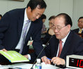 18일 공정택 서울시교육감이 국정감사에서 의원들의 질의에 대한 답변을 하기 위해 자료를 준비하고 있다.
