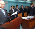 국회 교육위원회(위원장 권철현)는 17일 교육부를 시작으로 11월 2일까지 국정감사에 돌입 했다. 광화문 정부종합청사 16층 대회의실에서 김신일 교육부총리가 국정감사에 성실히 임할것을 선서하고 있다.