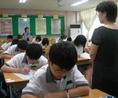 교실에 들어서면 자동으로 출석체크 빔프로젝트로 현장감 있는 원격수업 교실에 들어서는 순간, 무선출석인증(RFID)을 통해 칠판에 출석이 표시된다. 전자사물함에서 충전된 테블릿PC(TPC)를 꺼내 자신의 자리에 앉으면 다른 학교와의 원격 수업이 시작된다. 수업이 끝난 후 교사가 전자교탁과 네트워크로 연결된 학생들의 TPC를 통해 쪽지시험 문제를 내고 학생들이 문제를 풀자마자 바로 채점과 성적이 표시된다. 먼 미래의 모습일까요? 아닙니다. 여건만 허락되면 지금도 구현 가능한 현실입니다. 한국교육학술정보원(원장 황대준)은 최근 유비쿼터스 환경에서의 미래 교실을 구현한 ‘U-CLASS'를 개관했습니다. ◇생생하고 효율적인 수업=교실 문을 열면 적외선 센서 방식이 도입된 전자칠판이 백묵도 없이 학생을 맞습니다. 손 터치만으로 원하는 내용이 펼쳐지고 판서가 가능합니다. 물론 판서된 내용은 저장과 재 생이 언제든 가능합니다. 전자교탁에서는 전자칠판 뿐 아니라 교실 내 프로젝터, DVD 등 각종 장비를 그 자리에서 제어할 수 있습니다. 어떤 포맷으로 제작된 교안이라도 전자교탁에서 활용이 가능합니다. 옆 벽면에 설치된 최첨단 빔 프로젝트를 통해서는 현장감 있는 원격수업이 구