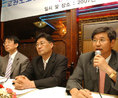 한국교원노동조합(위원장 이원한 오른쪽 첫번째)과 자유교원조합(위원장 이평기 오른쪽에서 두번째)은 7일 세실레스토랑에서 교원노조법 개정을 즉각 철회 할 것을 요구하는 기자회견을 가졌다.