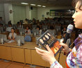 30일 서울 서부교육청에서 열린 수업방법 개선 우수교사 수업 시연에서 연북중 정명희 교사가 관내 음악교사들을 대상으로 멀티미디어 자료를 활용한 수업을 선보이고 있다.