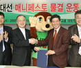 한국교총은 11일 우면동 교총회관에서 한국매니페스토실천본부(상임공동대표 강지원․김영래)와 ‘2007 대선 매니페스토 물결 운동 협약식’을 가졌다. 교총은 협약문을 통해 “지난 60년 동안 교원의 사회․경제적 지위향상과 교직의 전문성 확립에 노력해온 교총이 매니페스토 물결 운동에 동참키로 한 것은 신뢰공동체 구현과 성숙한 민주주의 실현을 위해주어진 역할을 다해 나가겠다는 대국민 선언이자 약속”이라고 밝혔다. 교총은 이번 협약을 계기로 매니페스토 운동의 정착을 위한 사업 및 활동에 적극 동참하고, 교원의 지위와 권익향상을 위한 정책을 책임 있게 개발하여 대선 정책으로 적극 반영해 나갈 방침이다. 또 지속가능한 중장기적 발전계획을 공표하는 교육매니페스토를 실천해 나가기로 했다. 이날 협약식에서 윤종건 교총회장은 “매니페스토 물결 운동 동참 선언이 단순히 구호에 그치지 않고 생활과 교육현장 속에서 꽃 피울 수 있도록 노력해 나가겠다”고 다짐했다. 강지원 공동대표도 인사말을 통해 “정통 교원단체로 사회적 책임을 다하고 있는 교총의 2007 대선 매니페스토 물결 운동 참여는 이번 대선이 정책선거로 진행되도록 하는데 큰 힘이 될 것”이라고 말했다.…