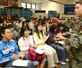 서울시교육청은 서울,평택지역 고1 53명을 대상으로 4일 부터 8일까지 주한 미군사령부에서 주관하는 "좋은 이웃 영어캠프"를 열었다. 참석한 학생들이 6일 미8군 군악대의 음악을 통한 영어교육을 체험하고 있다.
