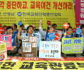 한국교총은 31일 정부종합청사 후문에서 9일째 교원평가 철회를 위해 투쟁을 했다. 이날 전남, 전북, 광주, 경남교총이 참석한 가운데 교육관료부터 평가 할 것을 주장하며 졸속적인 교원평가를 즉각 철회 할 것을 촉구 했다.