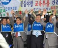 7일 오후 1시경 서울 광화문 정부종합청사 후문 도로변. 아침 이른 시간부터 전국 각지에서 속속 집결한 한국교총 임직원과 회원 300여 명이 우리의 요구사항이 관철됐다는 선언과 동시에 환호하고 있다.